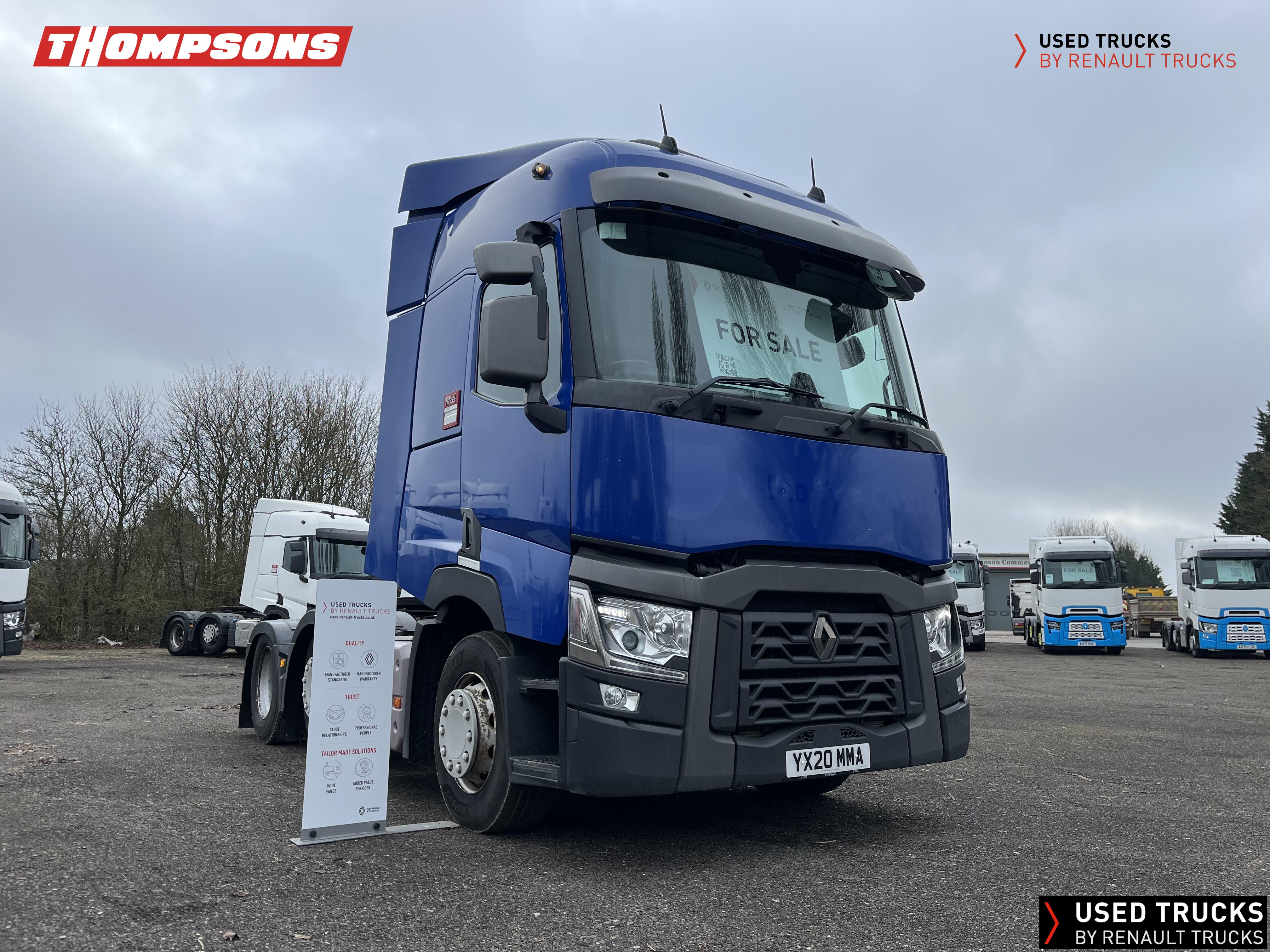 2020 (20) Renault T 460 TML 6x2 Tractor Unit, with just 599,513kms. Sleeper Cab, 11LTR 460 BHP Euro 6 Engine & Automatic Gearbox, Engine Brake, Fridge Fitted in Under Bunk Draw , Sunvisor, Cruise Control with Optiroll, Lane Departure Warning System, Emergency Brake Assist, FM/DAB+ Radio with Bluetooth, 12/24V Sockets, Sliding 5th Wheel.